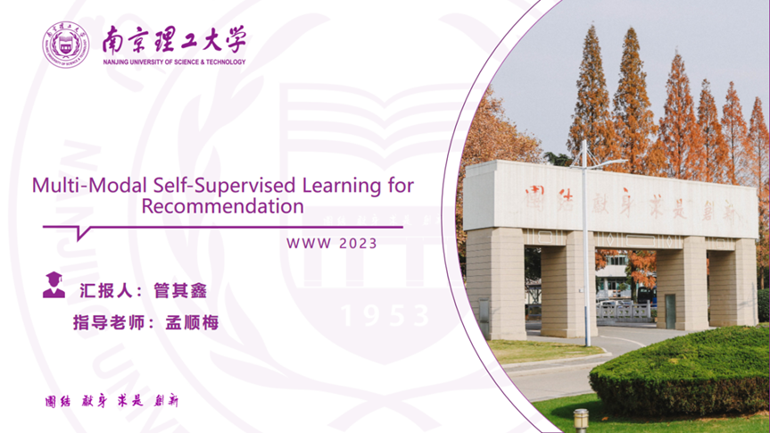 报告题目:Multi-Modal Self-Supervised Learning for Recommendation