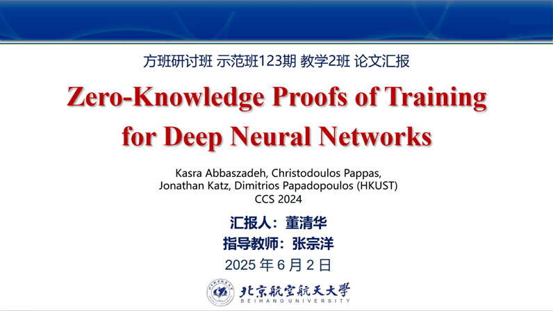 报告题目:Zero-Knowledge Proofs of Training for Deep Neural Networks