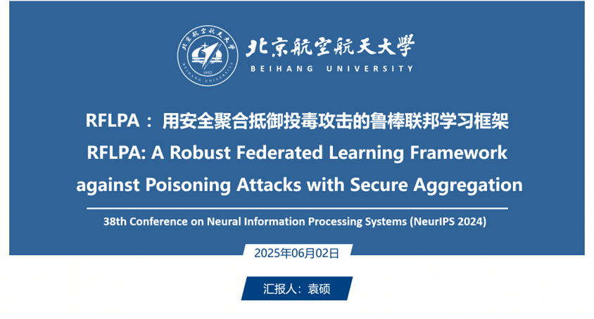 报告题目:RFLPA:用安全聚合抵御投毒攻击的鲁棒联邦学习框架