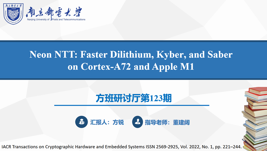 报告题目:Neon NTT: Faster Dilithium, Kyber, and Saber on Cortex-A72 and Apple M1