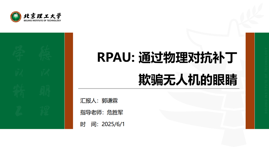 报告题目:RPAU:通过物理对抗补丁欺骗无人机的眼睛