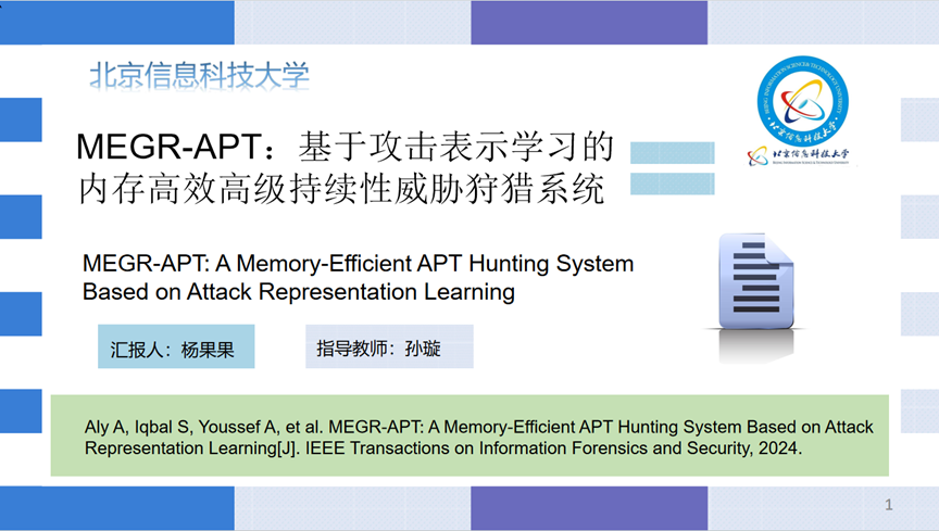 报告题目:MEGR-APT:基于攻击表示学习的内存高效高级持续性威胁狩猎系统