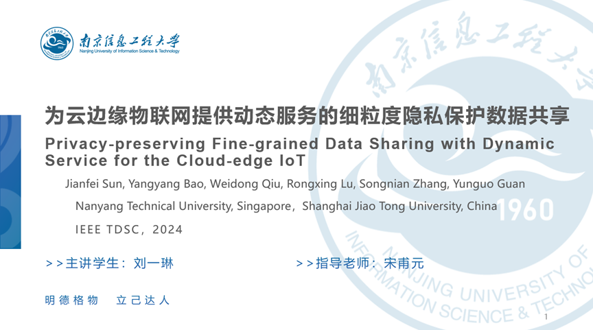 报告题目:为云边缘物联网提供动态服务的细粒度隐私保护数据共享