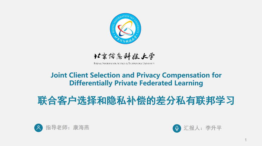 报告题目:联合客户选择和隐私补偿的差分私有联邦学习