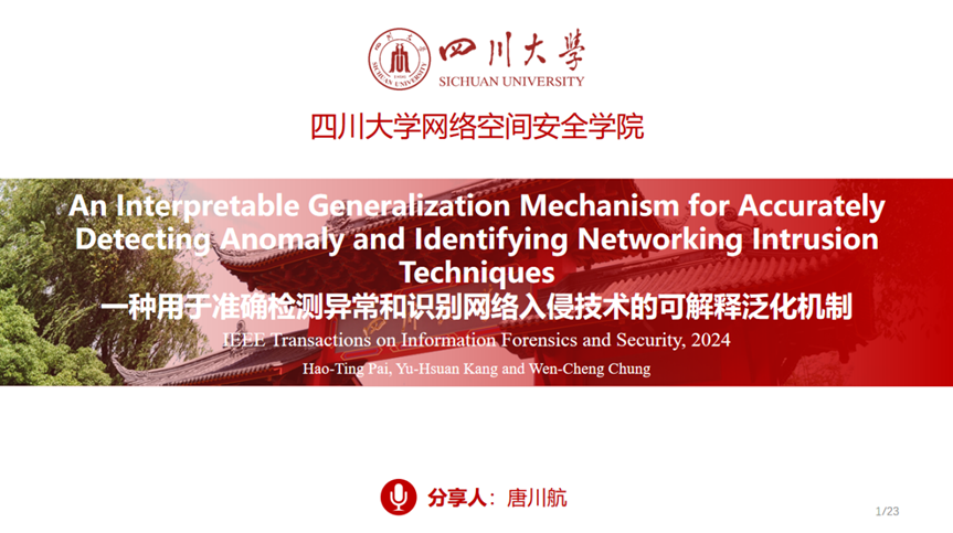 报告题目:一种用于准确检测异常和识别网络入侵技术的可解释泛化机制