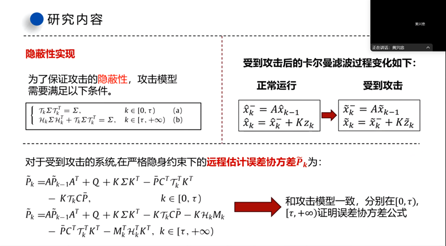 1、文章实际应用相关的问题,比如说:文章中的A、C、Q、R分别代表什么实际的含义,这个问题需要考虑清楚,再比如说文中所推导的估计误差协方差的迹,最大化这个迹和最大攻击性能有什么关系,为什么最大化估计误差协方差的迹就能最大化攻击性能。