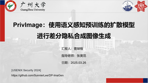报告题目:PrivImage:使用语义感知预训练的扩散模型进行差分隐私合成图像生成