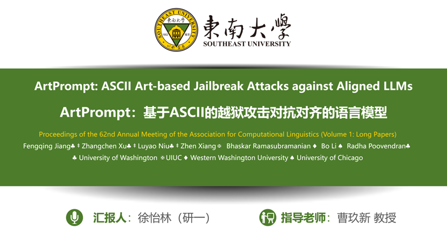 报告题目:ArtPrompt:基于ASCII的越狱攻击对抗对齐的语言模型