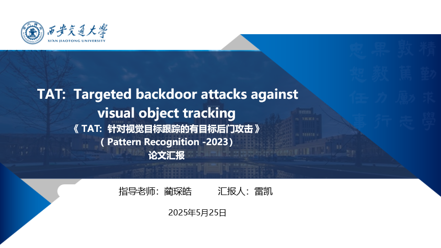 报告题目:TAT:针对视觉目标跟踪的有目标后门攻击