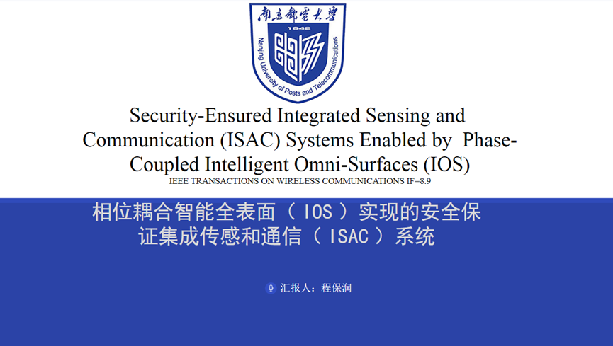 报告题目:相位耦合智能全表面(IOS)实现的安全保证集成传感和通信(ISAC)系统