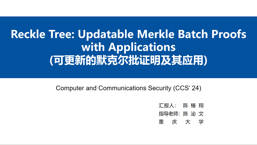 报告题目:Reckle Tree:可更新的默克尔批证明及其应用
