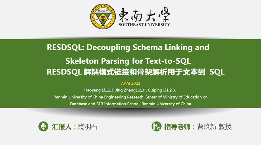 报告题目:RESDSQL解耦模式链接和骨架解析用于文本到 SQL