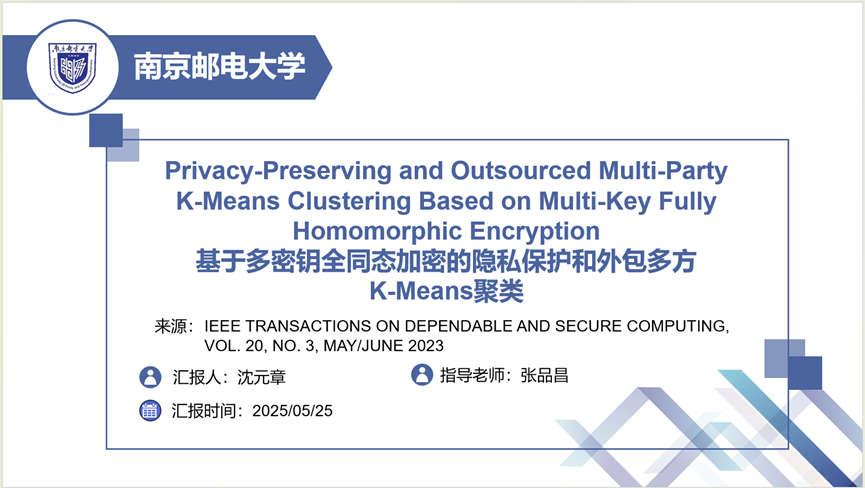 报告题目:基于多密钥全同态加密的隐私保护和外包多方K-Means聚类