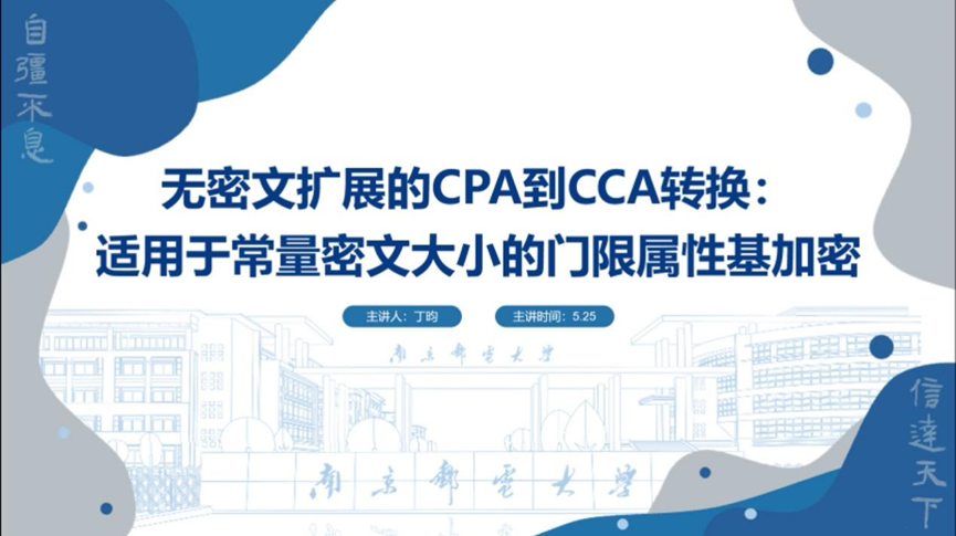 报告题目:无密文扩展的CPA到CCA转换:适用于常量密文大小的门限属性基加密