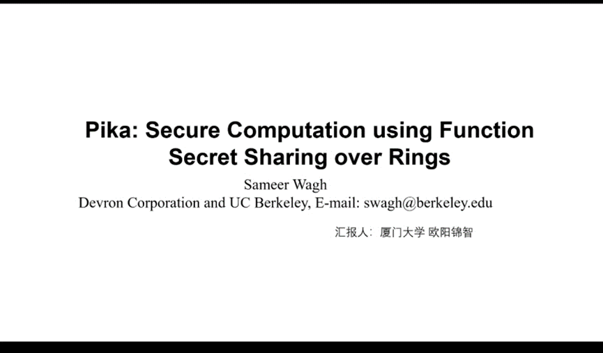 报告题目:Pika: Secure Computation using Function Secret Sharing over Rings