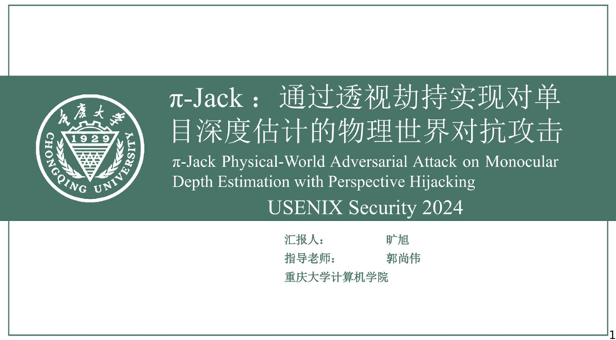 报告题目:π-Jack:通过透视劫持实现对单目深度估计的物理世界对抗攻击