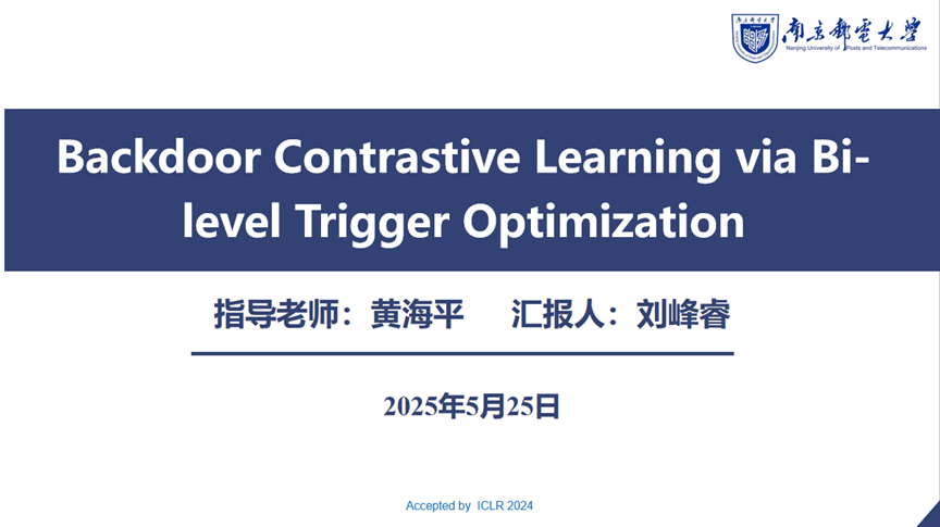 报告题目:Backdoor Contrastive Learning via Bi-level Trigger Optimization